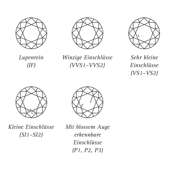 Die Reinheit (Clarity) eines Diamanten ist wichtig für die Brillanz und somit auch entscheidend für das optische Erscheinungsbild. Da der Brillant exakt so geschliffen wird, dass er das einfallende Licht total reflektiert, kann je nachdem ein Einschluss mehrfach reflektieren. Ist ein Diamant frei von Einschlüssen, wird er als lupenrein bezeichnet (if - internally flawless). Hat er auch äusserlich keine Merkmale, trägt er das Prädikat flawless (makellos). Erhält ein Diamant die Bezeichnung Typ IIa, handelt es sich um einen äusserst reinen Diamanten.